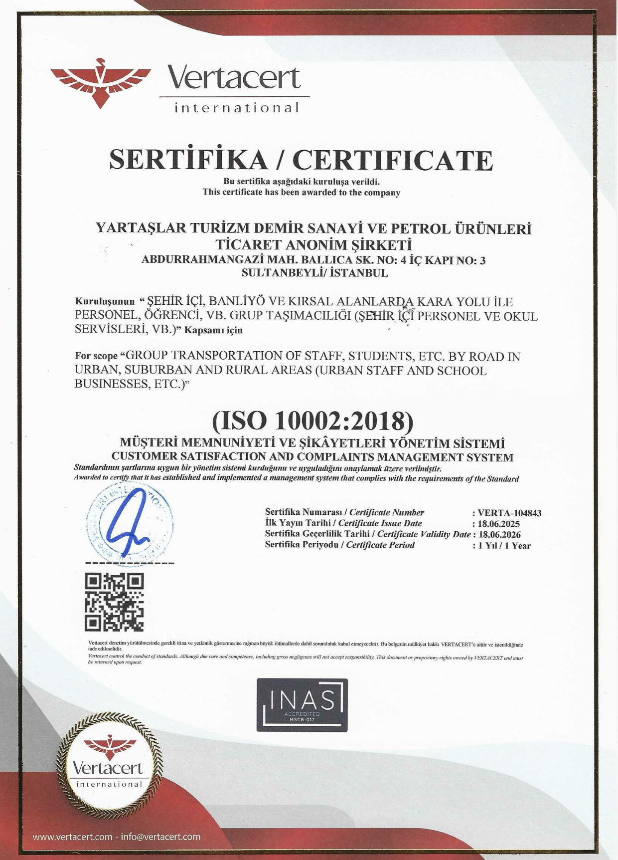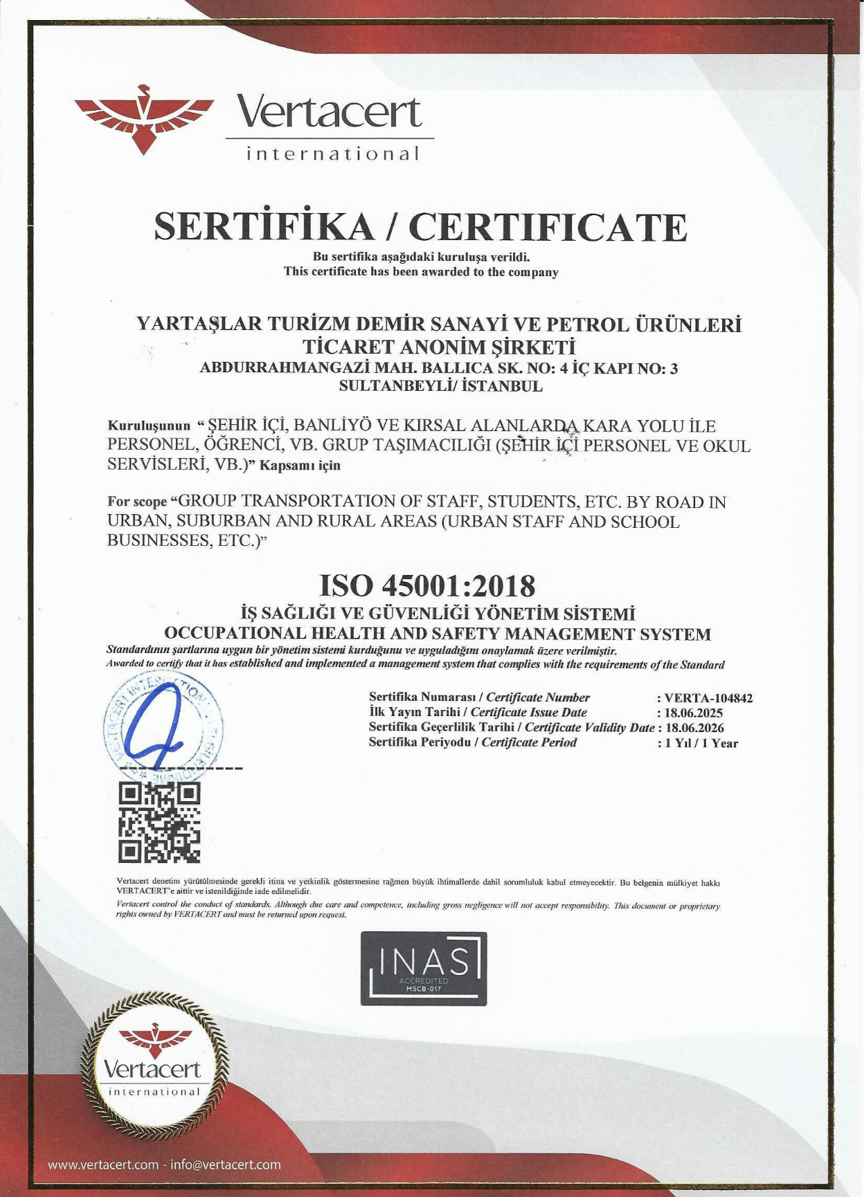 Bugün Yartaşlar Turizm A.Ş. olarak;